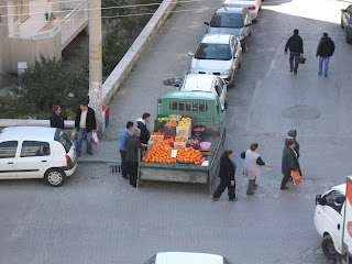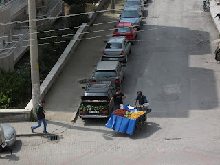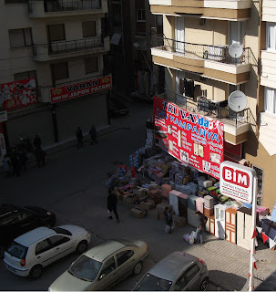 Nálunk az utcában (ez egy hosszú utca úgy hívják bulvar) szinte mindent meg lehet vásárolni: van élelmiszerbolt (5 db), bútorbolt, harisnya- és zoknibolt, lottózó, papír-írószer, cukrászda, japán bazár (olyan, mint a kínai otthon), sültcsirke árus, büfé, fürdőszoba-felszerelés bolt, pék, sajt bolt stb. és egy dzsámi is, de ott pénzért nem adnak semmit 🙂 Sőt még élő tyúkot is lehet venni – szerintem nincs engedélye az árusnak, az üzletnek fala sincs… viszont van járólap…