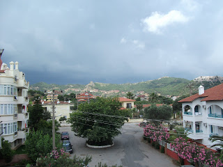 Az első utunk ilyenkor mindig egy kör autóval a főutcán, hogy megállapítsuk mi minden változott az utóbbi látogatásunk óta: most két új szállodát fedeztünk fel a főutcán. A felfedezés persze itt nem ér véget: új éttermeket is kerestünk. Találtunk is. Ez alkalommal egy gyorséttermet (a 2 McDonalds és 2 Burger King mellett) ami az izmiri Pizza Pizza lánchoz tartozik (mindig a hazait részesítjük előnyben). Már az épület maga is érdekes, a főutcán a strand mellett egy különálló egy emeletes épület csodás kilátással a tengerre és a belváros kikötőjére