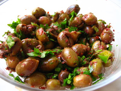 A törökök (és én is) odavannak az olíváért és nagyon sokrétűen fel tudják használni: salátákhoz, egytál ételekhez stb. A legjobb, amikor összekeverik a fekete és zöld bogyókat, öntenek rá olajat, chillipaprikát, mentát, meglocsolják friss citromlével, és sajttal, meg finom, foszlós fehér kenyérrel elfogyasztják. (Ugyanezt lehet paradicsommal és kígyóuborkával is, sőt a főtt tojással is.)
