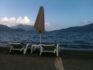 Innen még 30 km. Aztán felkapaszkodunk a Marmarist ölelő hegyeken és végül, a tetőn megpillantjuk a várost a tengerrel.