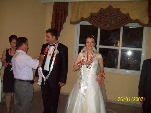 Szokas ilyenkor egy piros szalagot kötni a menyasszony derekara, amit a völegény elvag, de nalunk ez nem volt.
