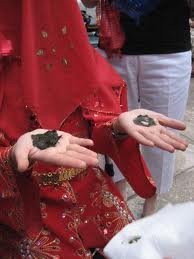 Minden jelenlévö kapott egy szépen becsomagolt hennat (tovabba mogyorot és egy kendöt ajandékba, amiket egy jellegzetes kosarban hozott a fiu csaladja) és aki akarta bekenhette a tenyerét vagy akar az ujjait hennaval. Igy történt, hogy életem elsö hennaja befogta a tenyerem.